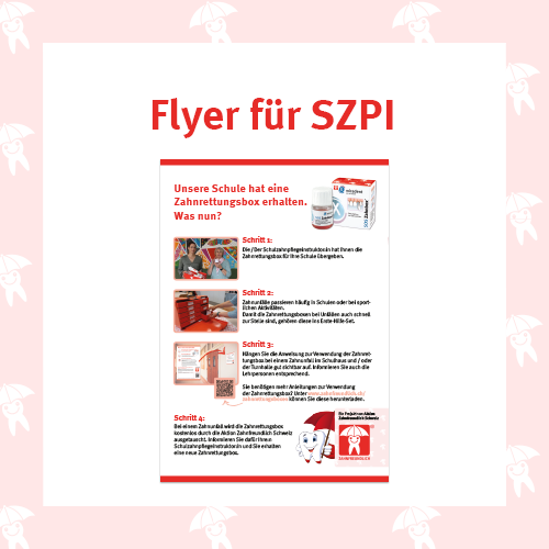 Schulen erhalten die Zahnrettungsbox über ihre zuständigen Schulzahnpflegeinstruktor:innen – wenn diese Mitglieder von Aktion Zahnfreundlich Schweiz sind. Diese erhalten die Box im Rahmen der halbjährlichen Semesterlieferung der Aktion Zahnfreundlich Schweiz und bringen die Zahnrettungsboxen direkt an die Schule, erklären die Anwendung und stehen bei Fragen zur Verfügung. Die Nachbestellung nach Gebrauch ist ebenfalls durch das Netzwerk organisiert.